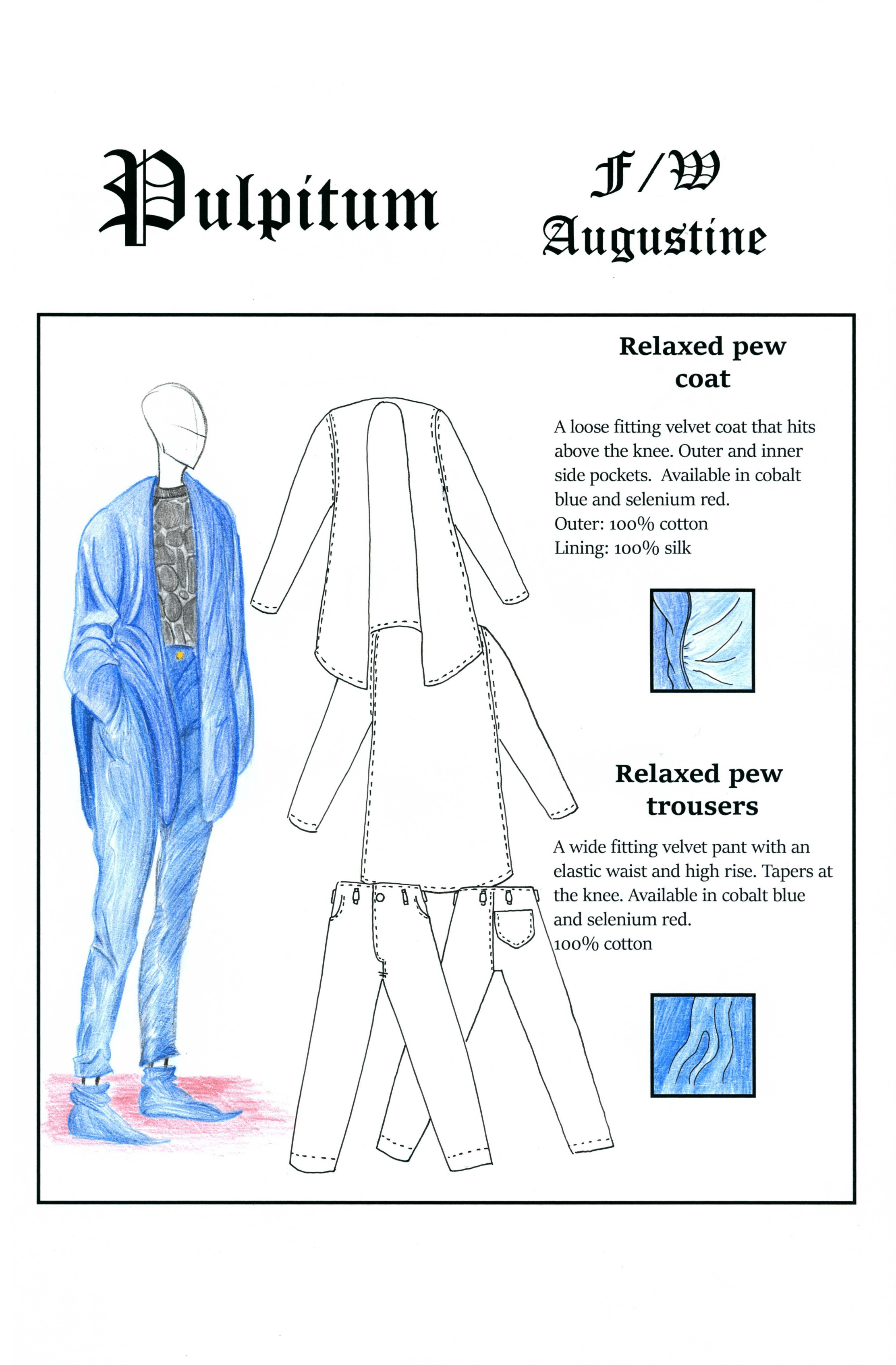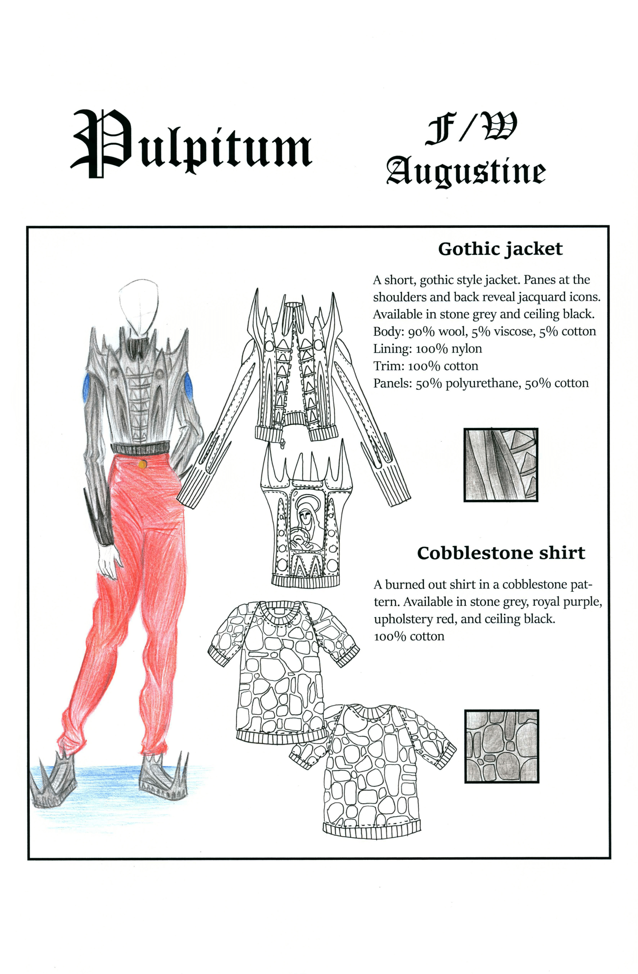 I was also interested in translating the severe Gothic architecture into a soft goods world. I imagined a heavily constructed jacket, with panels on the sleeves and back that would show religious scenes that mimicked stained glass windows.