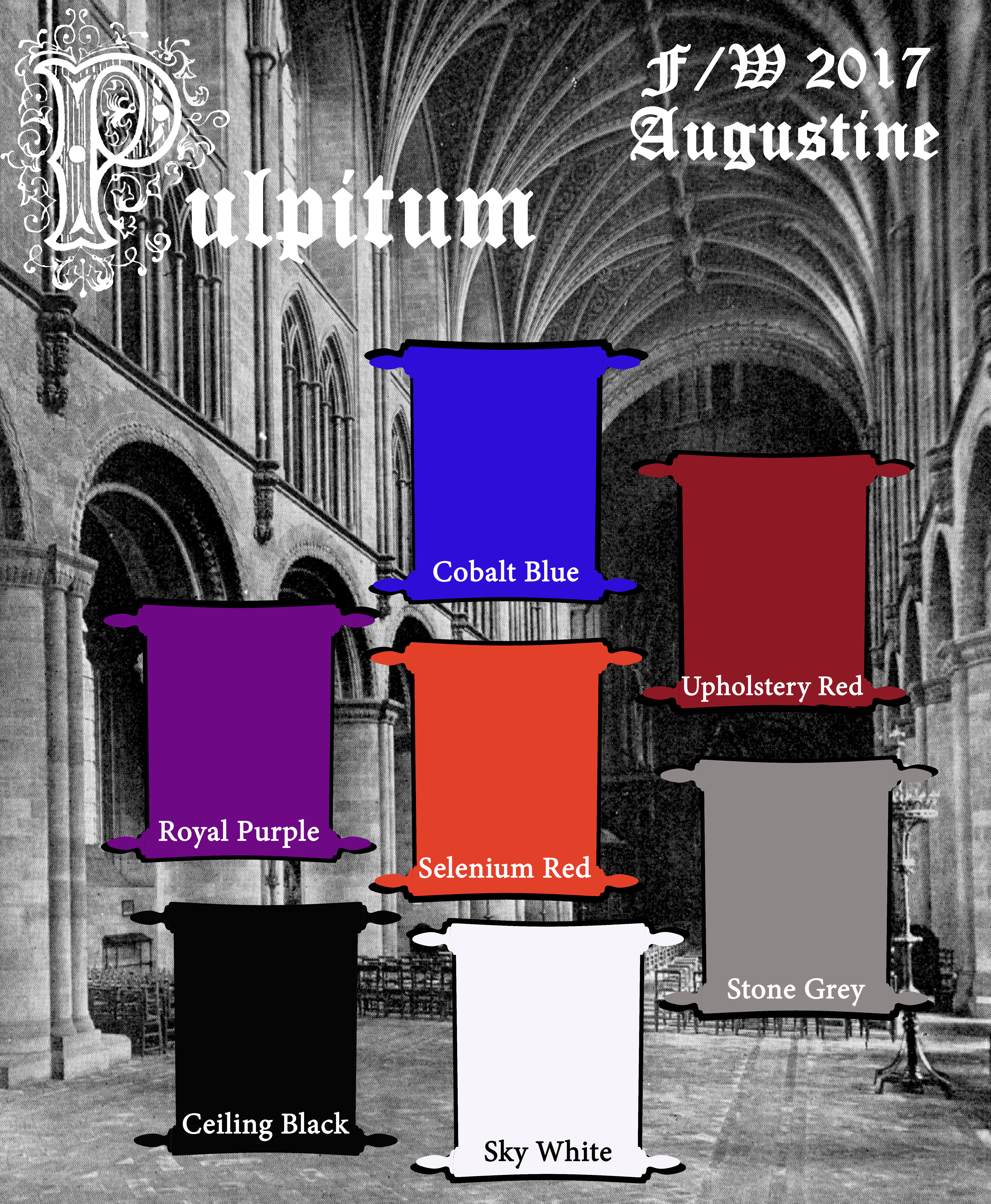 Next we created a color palette for our fictional brand. I focused on the primary colors which I imagined when I thought of cathedrals. These were the saturated tones found primarily in stained glass, and the muted, natural colors that surrounded them.
