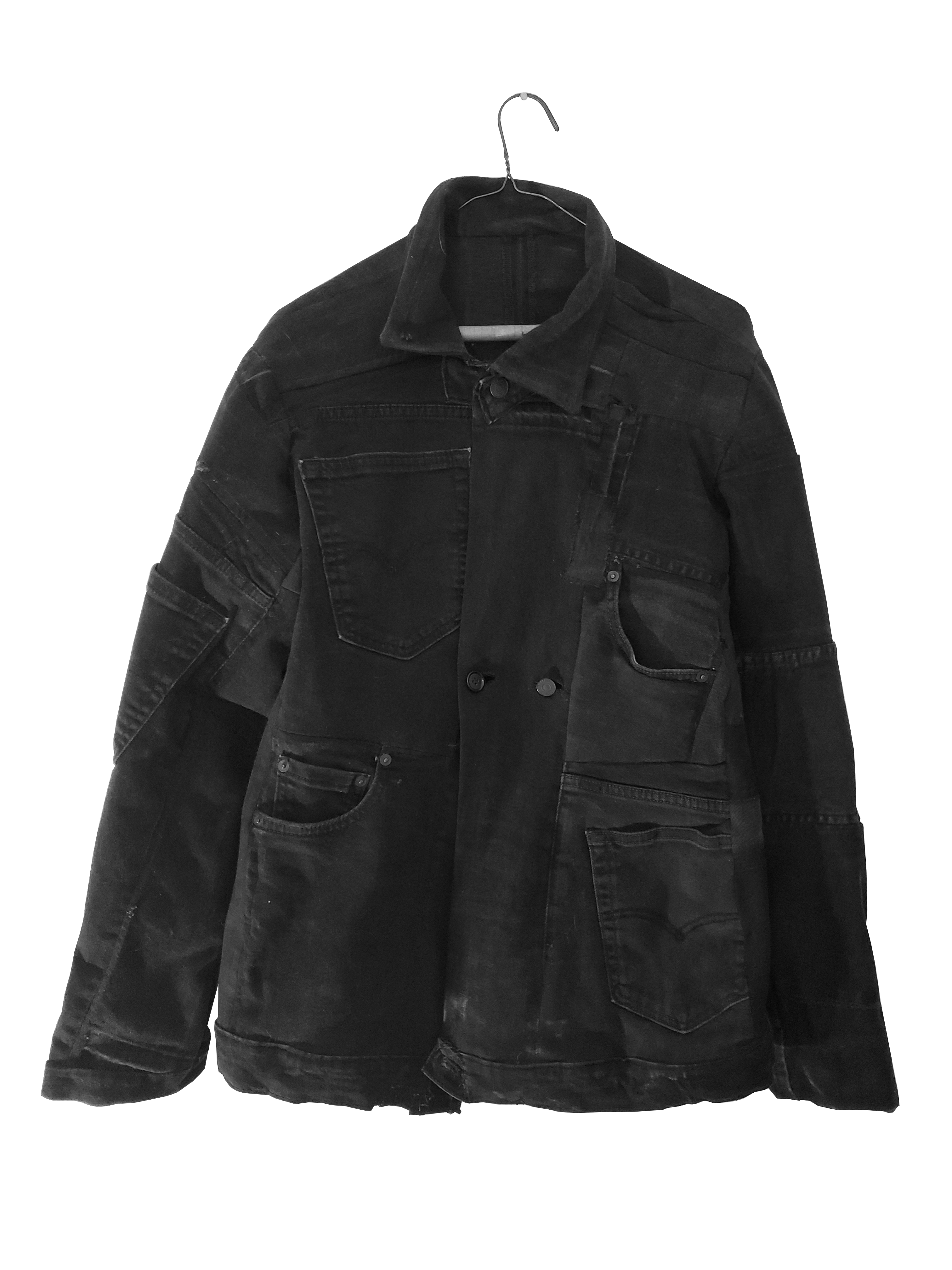 The final result is a grungy, chaotic jacket. It is patterned on an unstructured block, and features a combination of hand sewing and machine sewing. It is slim-fitting, and feels equal parts delicate and jagged.
