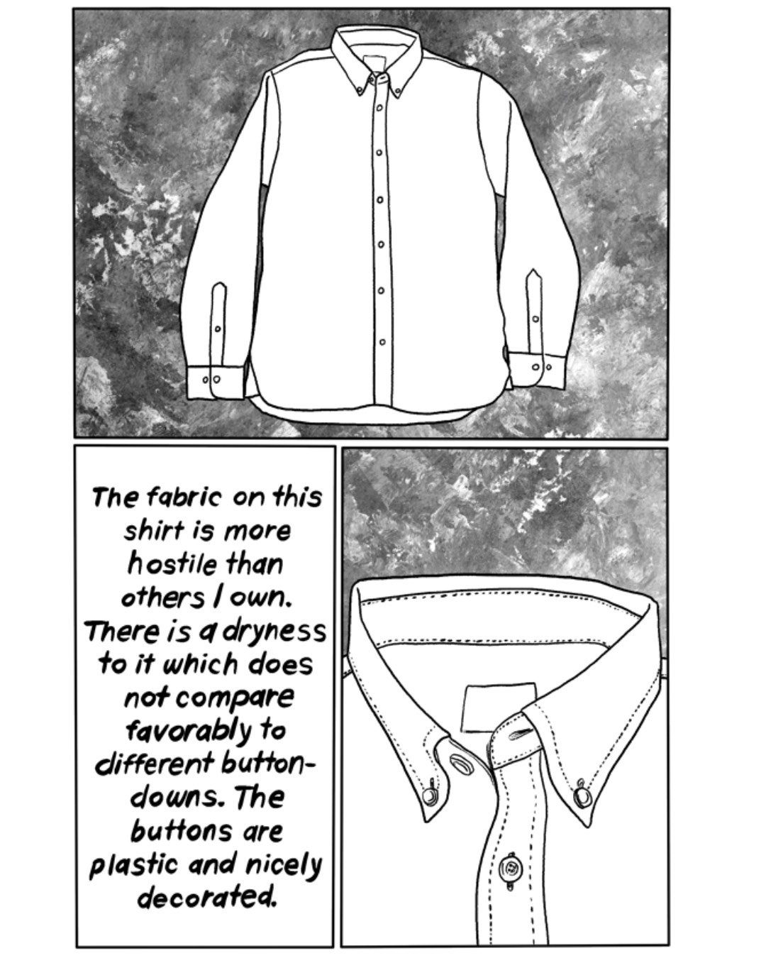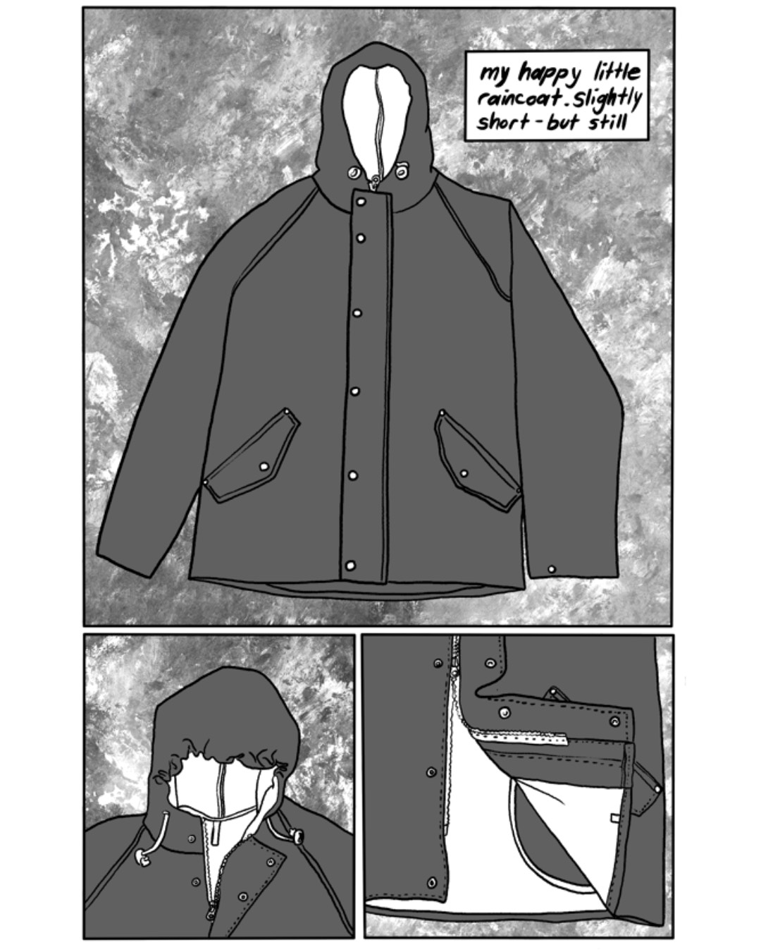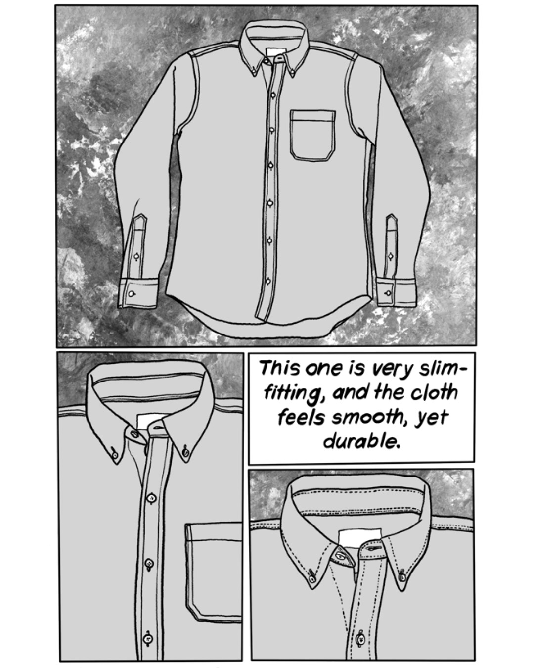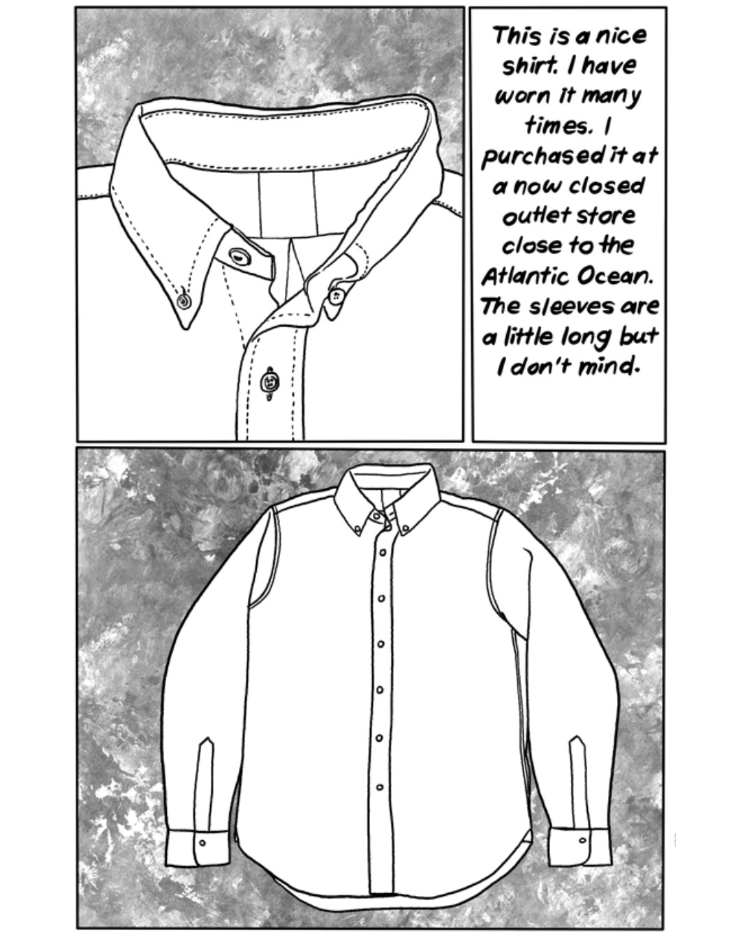 I had the idea during quarantine to create a small comic about certain clothes from my wardrobe. I selected a range of shirts and jackets and decided to write a few words about them, as well as produce a detailed flat of each garment.
